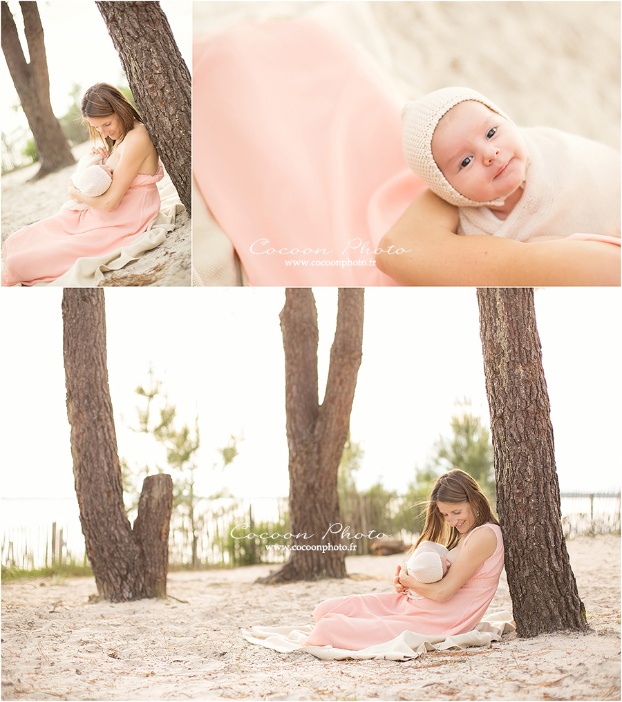 Histoire de vous mettre un peu dans l’ambiance parce que c’est bientôt les vacances et que ça fait un petit bout de temps que l’on attendait le retour des beaux jours, aujourd’hui je vous emmène en promenade, vers un petit coin de paradis que j’affectionne particulièrement, non loin de chez moi à Andernos les Bains. Mettez-vous à l’aise, allons marcher dans le sable pour retrouver un petit duo de charme pour une séance photo lifestyle maman et bébé à la plage.